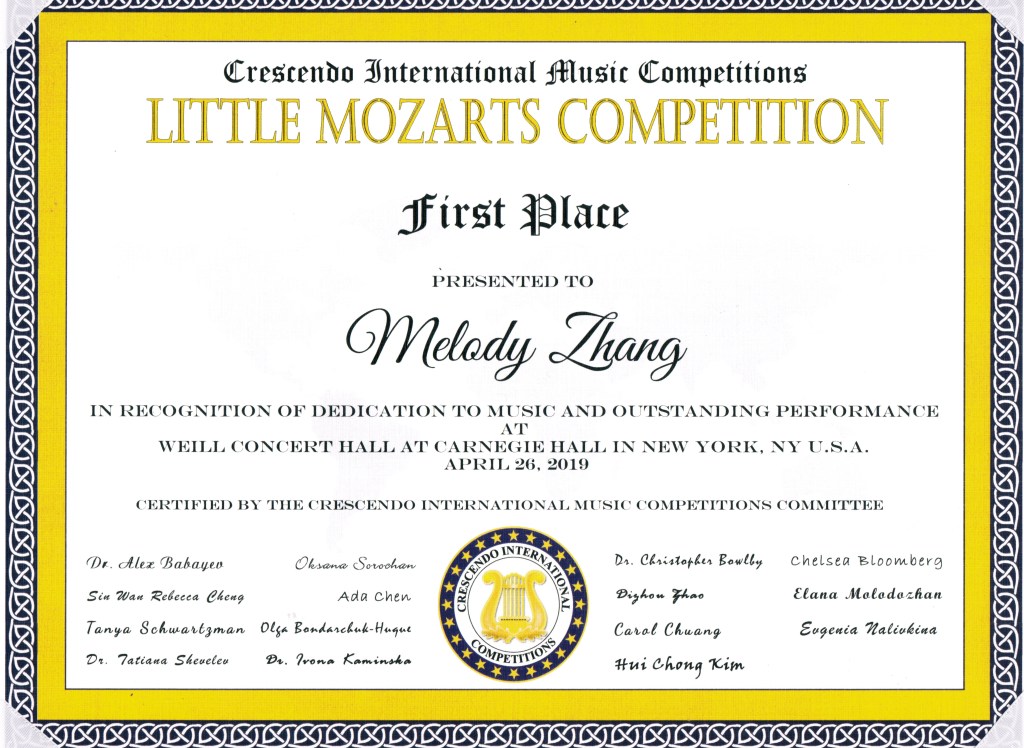 In the year of 2019, my piano teacher suggested that I applied to the Crescendo International Competition (the Little Mozarts category) for a chance to win something. It was my first big competition; we didn’t go in expecting to win anything, much less to play at Carnegie Hall.