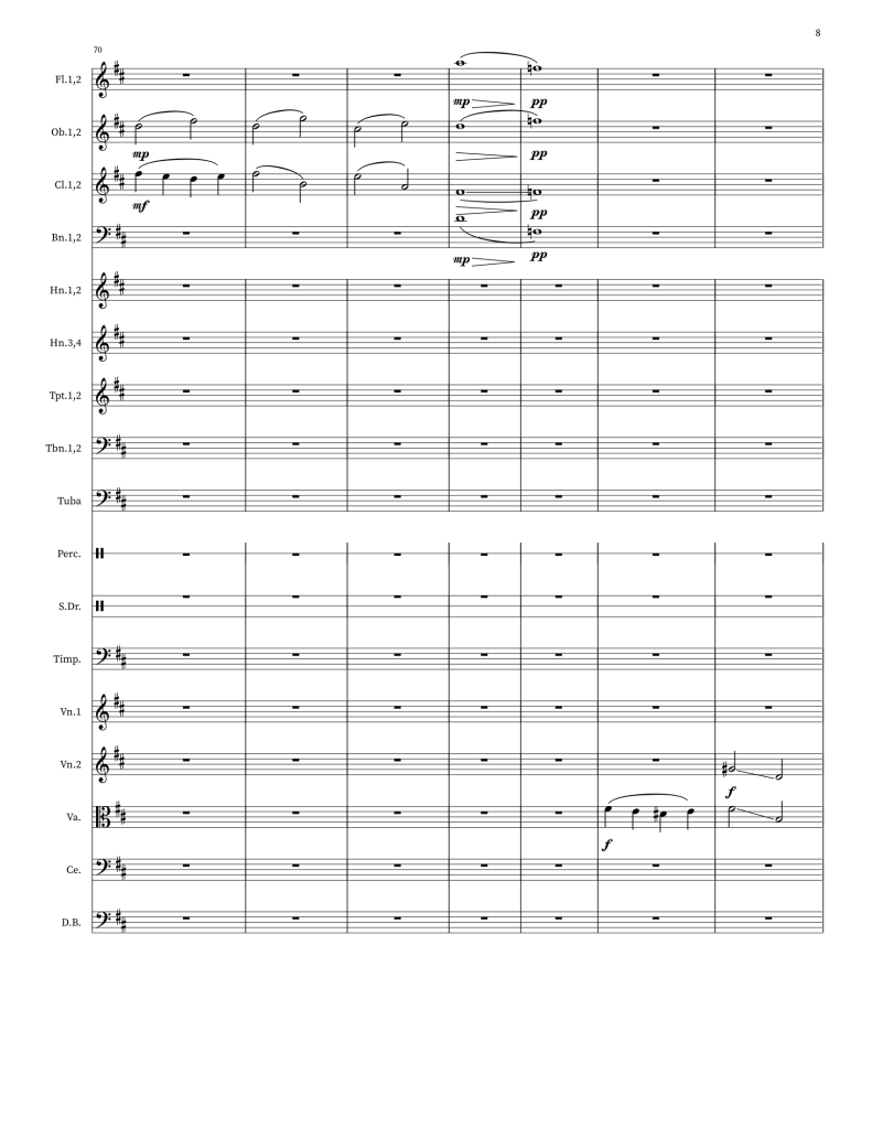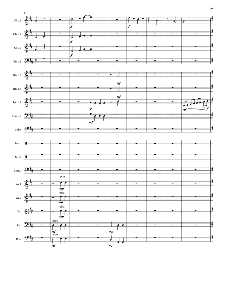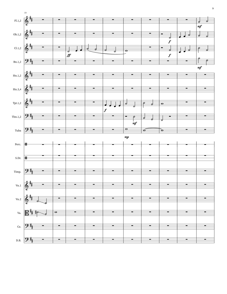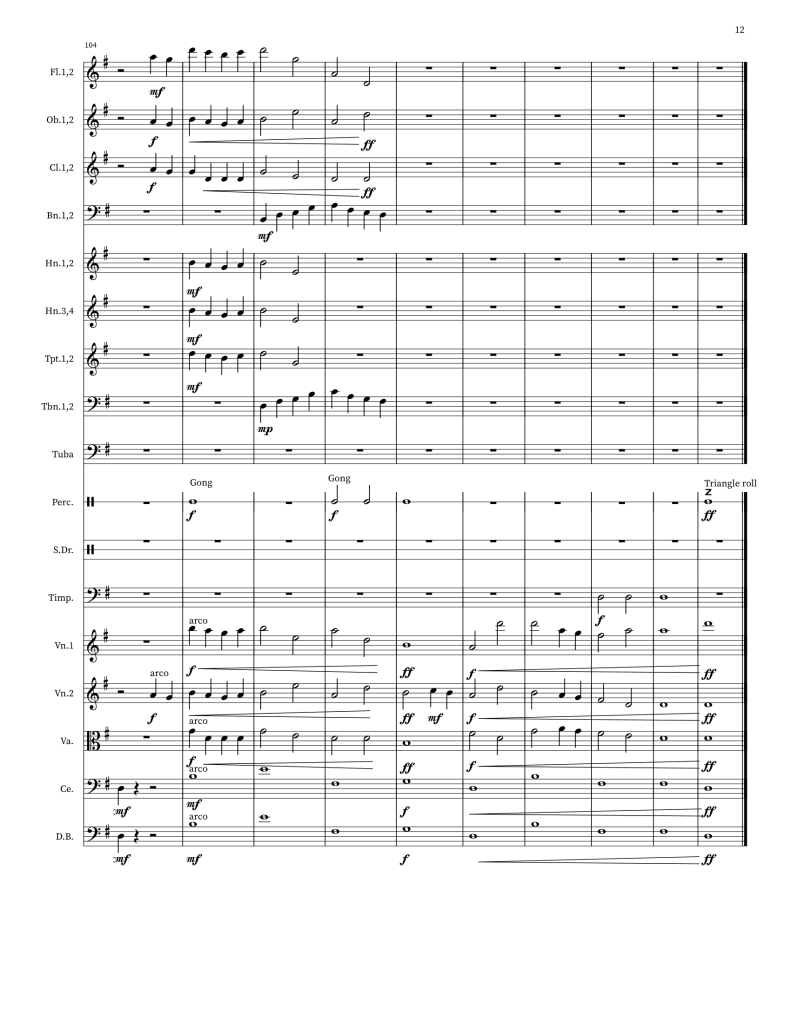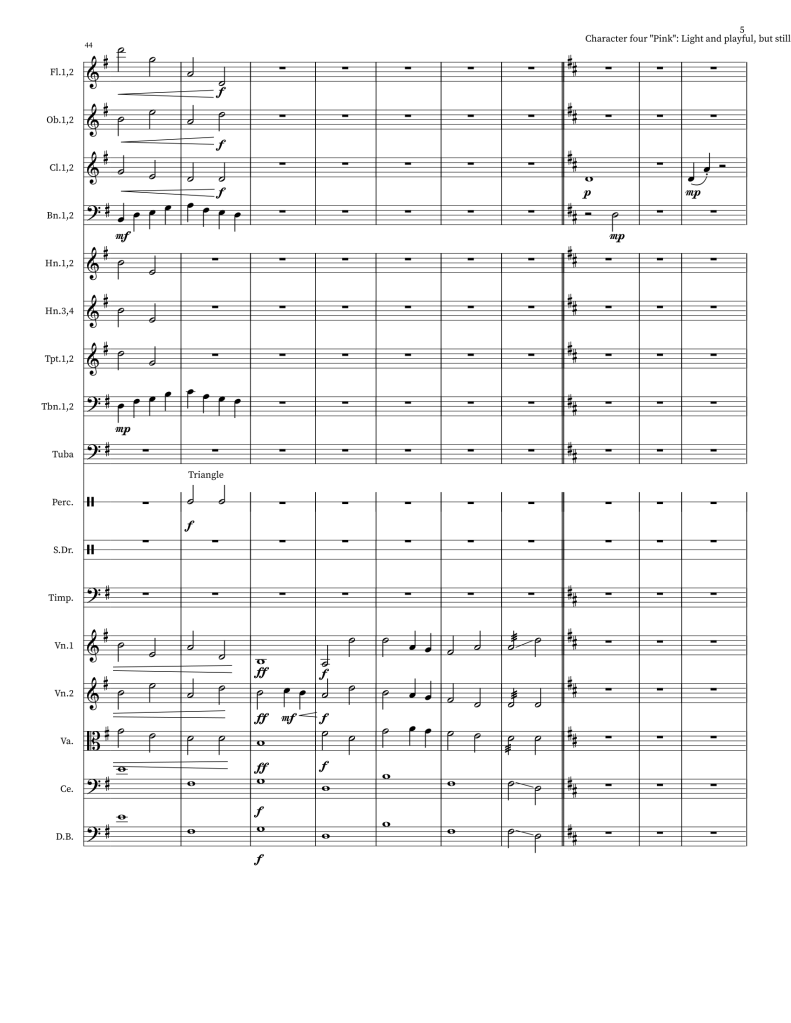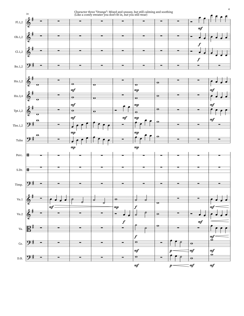 If I were to rewrite it, I would only keep the main theme and the concepts/five parts. It’s also a piece that might need a smaller ensemble along with the orchestra, or just a smaller ensemble. The score of the piece is shown below in a slideshow: