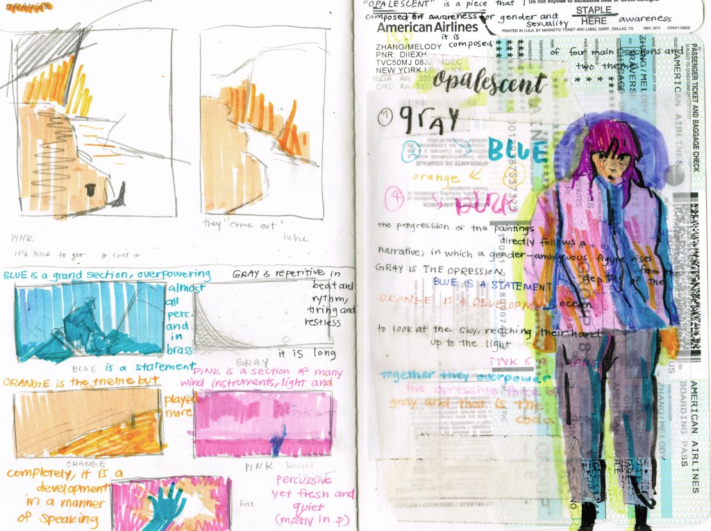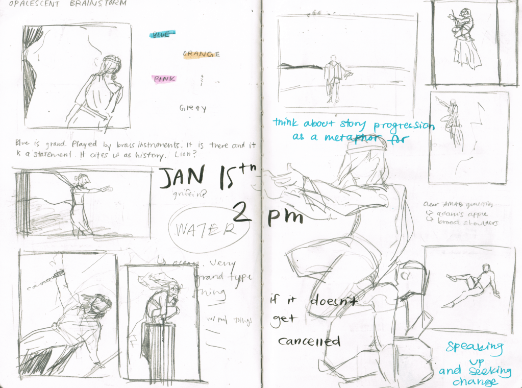 Shown below are two sketchbook spreads, put in chronological order of my brainstorming for every painting.